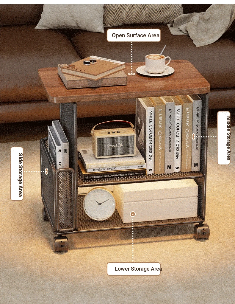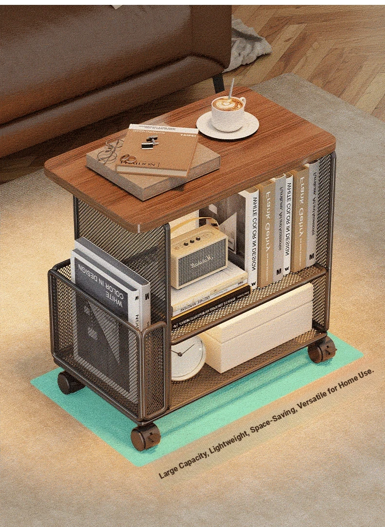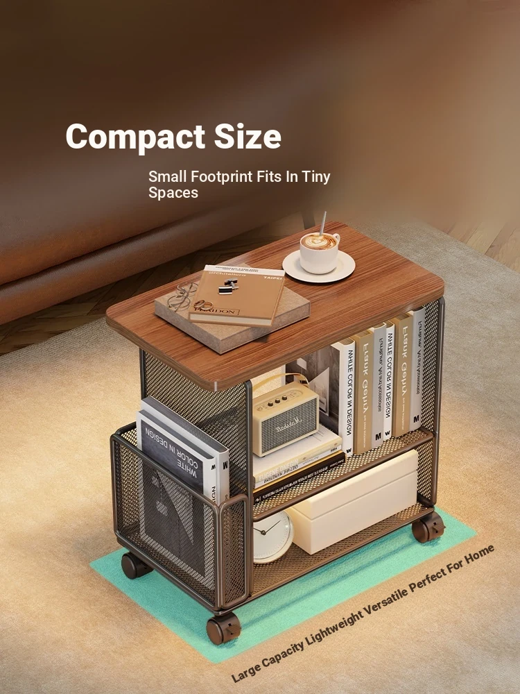 Mobile Side Table with Wheels - Versatile Magazine Storage Cart for Living Room Sofa, Easy-to-Move Corner Table, Perfect for Home Use
