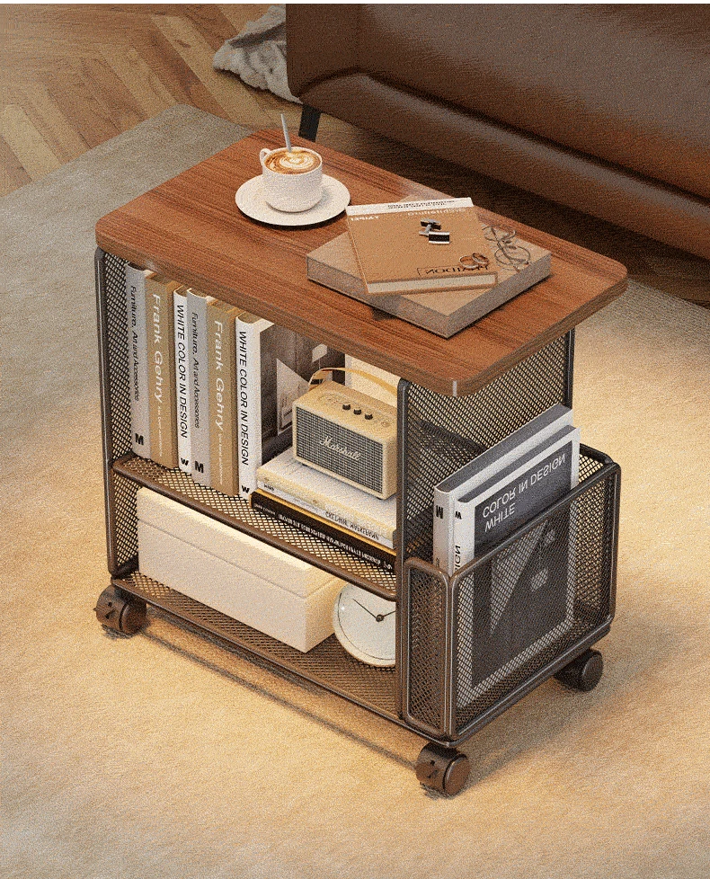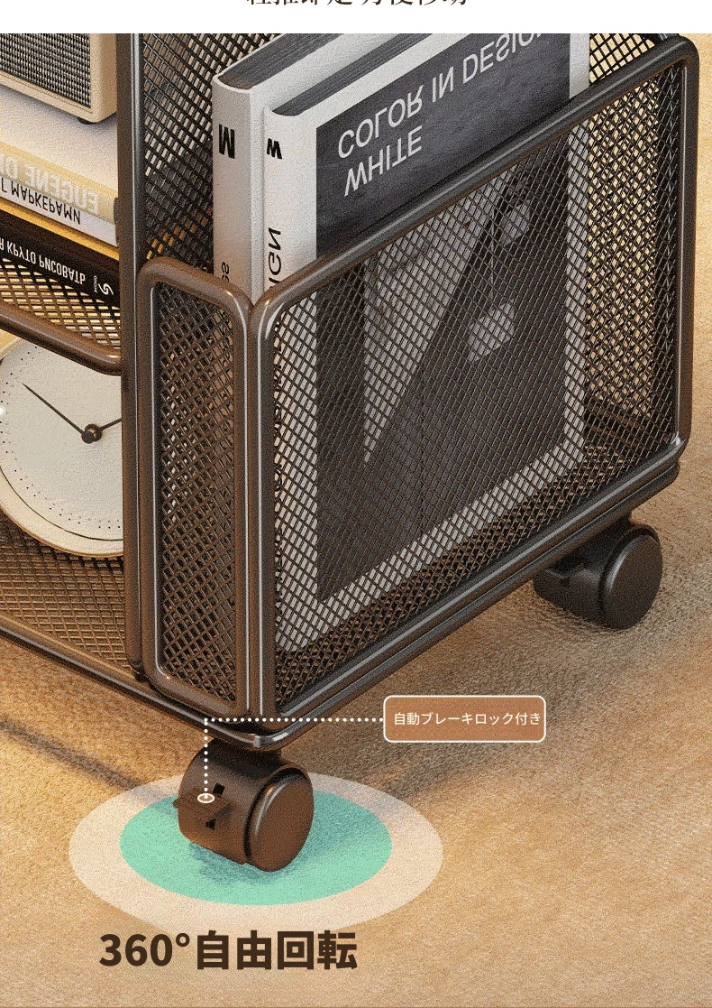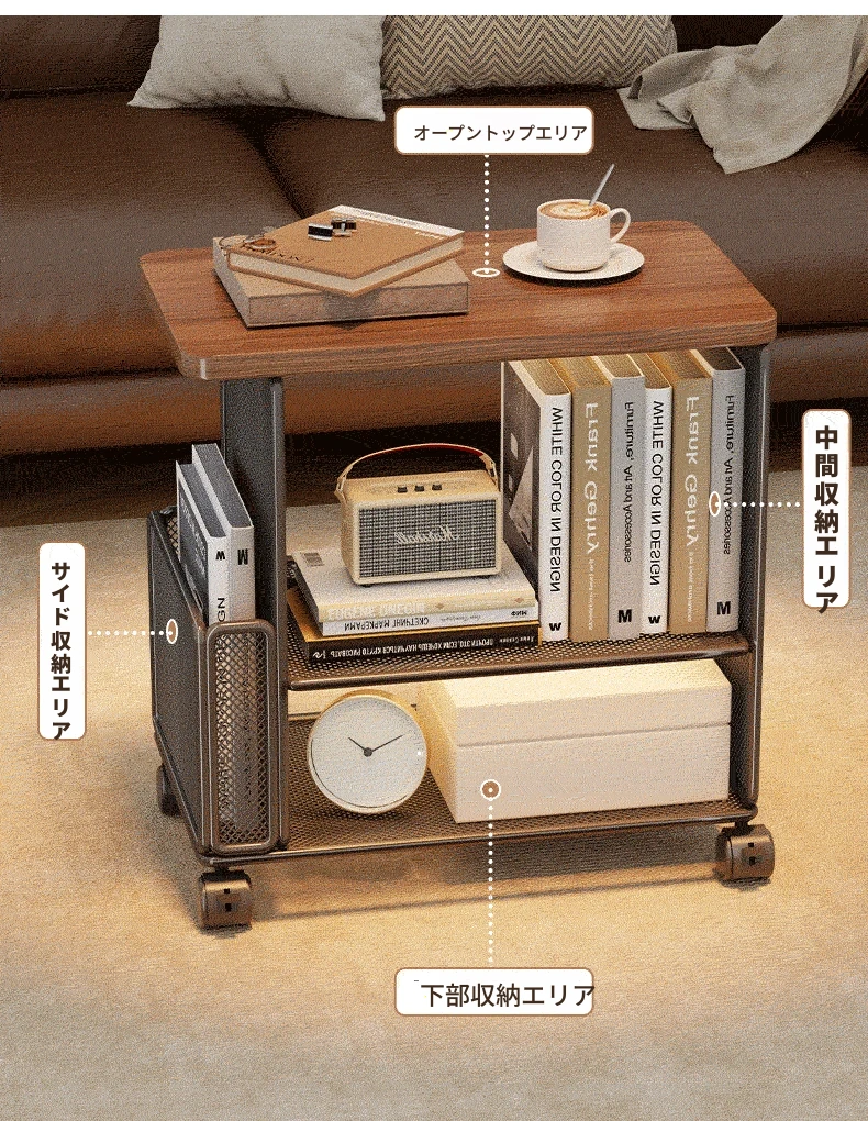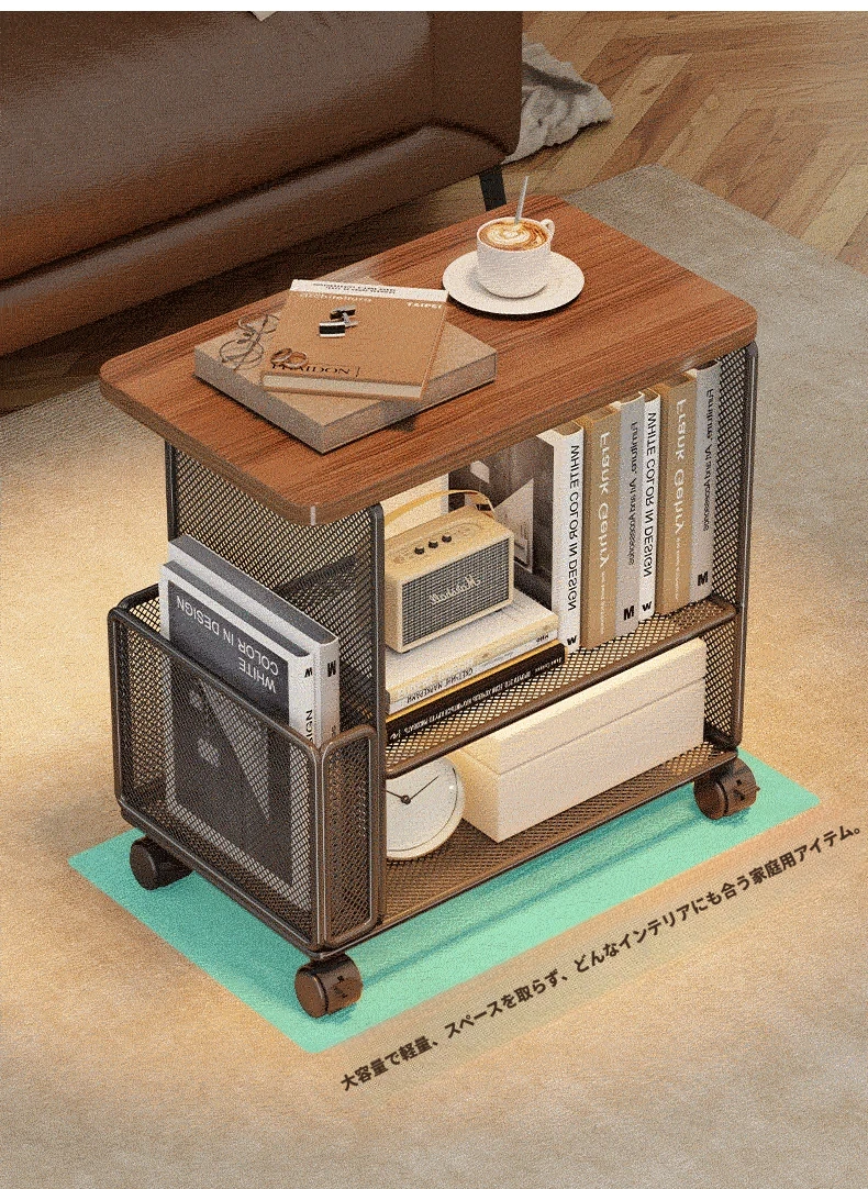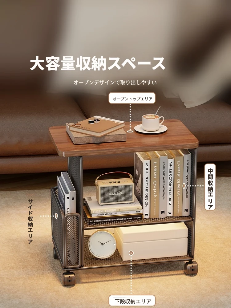 リビングに最適!キャスター付き移動式サイドテーブル・収納ラック - ベッドサイドやお部屋の隙間にぴったりなスナック収納にもなる便利アイテム。おしゃれで機能的なデザインで、あなたの生活空間をもっと快適にします!