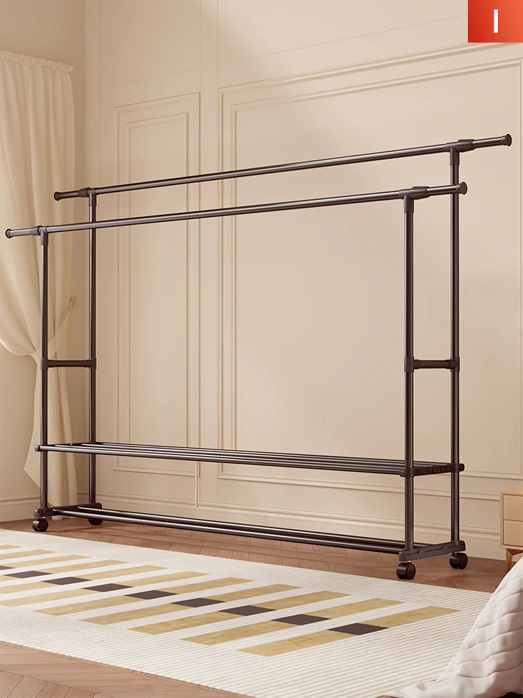 キャスター付き移動可能な衣類ハンガー - 寝室やリビングに最適な多機能衣類ラック!シンプルで使いやすく、家の中での衣類整理やディスプレイに便利です。おしゃれなコート掛けとしても活躍!