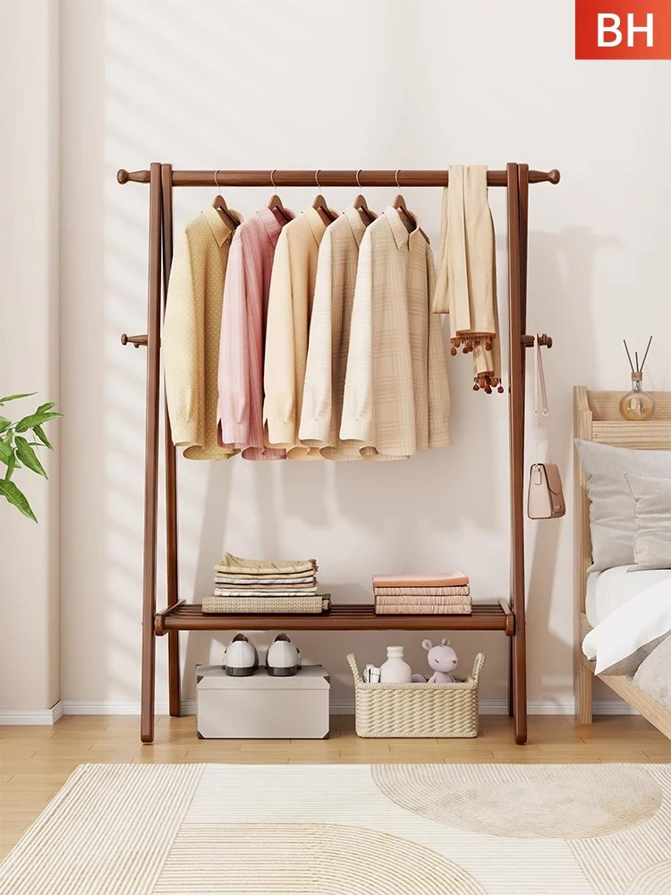 おしゃれで実用的!折りたたみ式の無垢材ハンガーラック - 寝室やリビングにぴったりのシンプルなビーチウッド製衣類ラック。スペースを有効活用し、衣類を美しくディスプレイ!